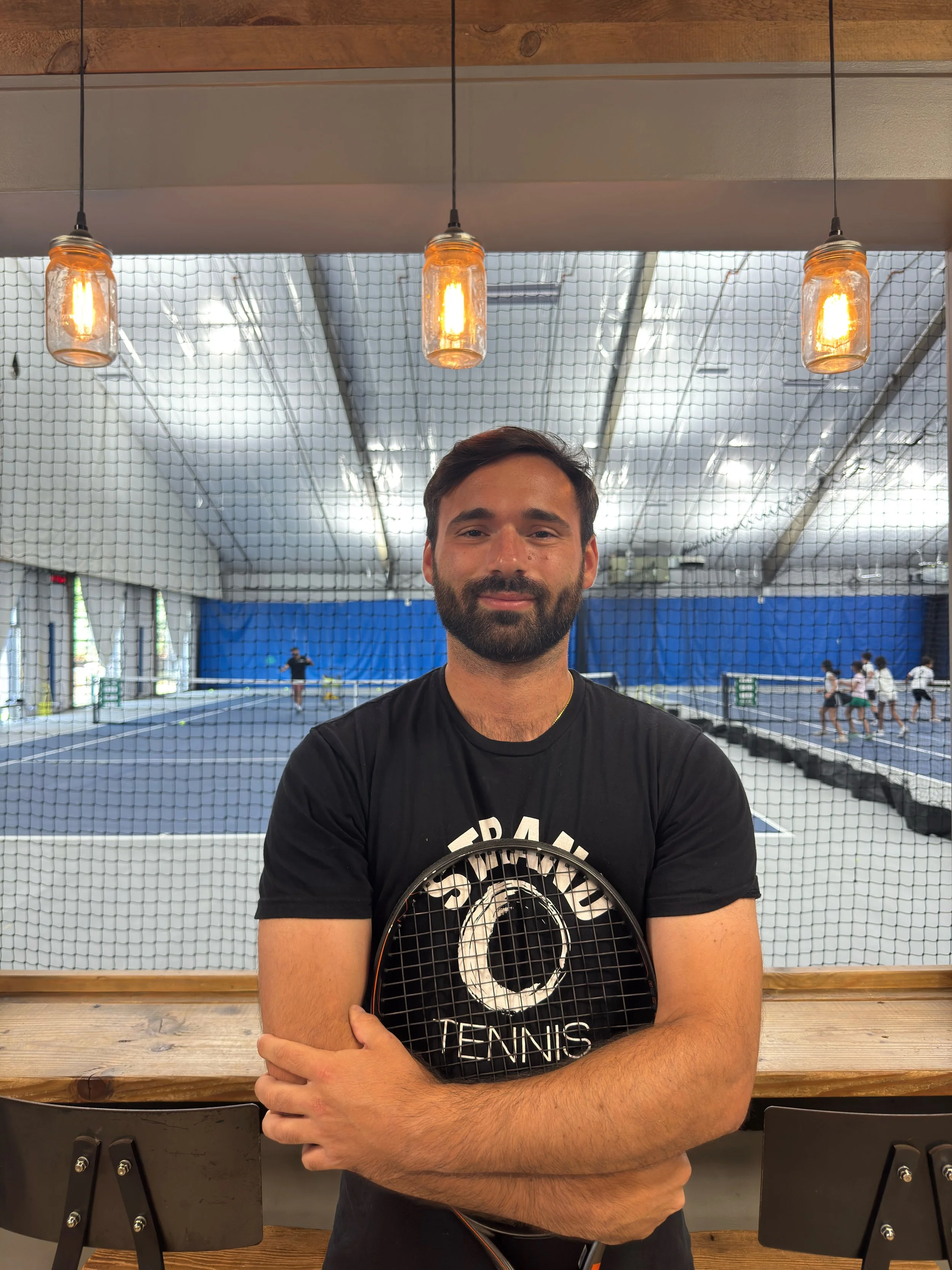 Peter grew up in Cedar Grove, playing first singles all four years. He then played Division II bcollege tennis for Southern New Hampshire University. Peter attained an ITA ranking of 20th for the DII East Region. He has been teaching tennis professionally at clubs in the Chatham area for several years, except for a detour to Gothenburg, Sweden in 2023-24, coaching at Ullevi Tennisklubb.